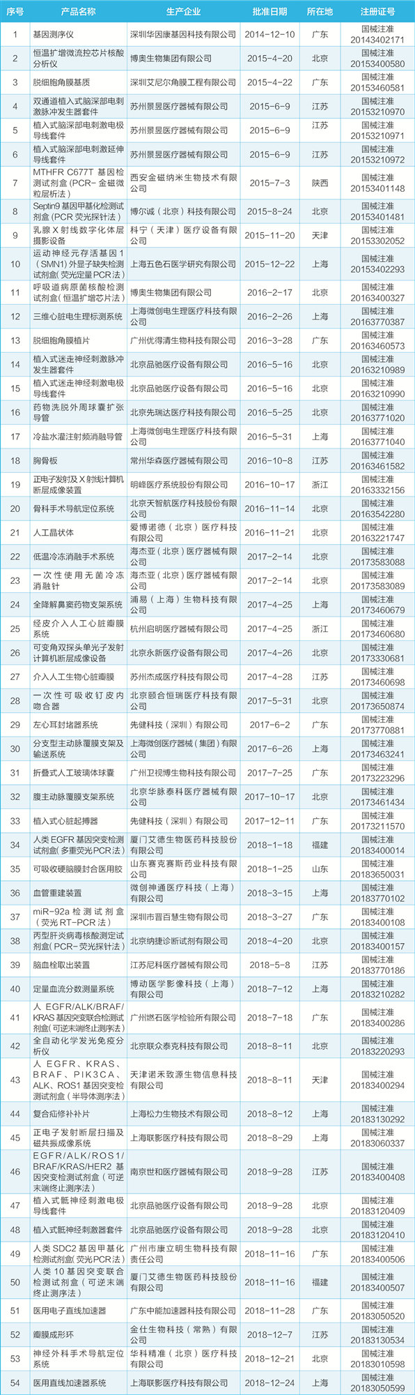 | 神經(jīng)外科手術(shù)導(dǎo)航定位系統(tǒng)、正電子發(fā)射斷層掃描及磁共振成像系統(tǒng)……2018年,國家藥品監(jiān)管部門批準(zhǔn)了21個(gè)創(chuàng)新性強(qiáng)、技術(shù)含量高、臨床需求迫切的創(chuàng)新產(chǎn)品上市,填補(bǔ)了相關(guān)領(lǐng)域的空白,更好的滿足了人民群眾的健康需求。 審批時(shí)間縮短83天 近年來,國家藥品監(jiān)管局貫徹落實(shí)《國務(wù)院關(guān)于改革藥品醫(yī)療器械審評審批制度的意見》和中辦國辦《關(guān)于深化審評審批制度改革鼓勵藥品醫(yī)療器械創(chuàng)新的意見》深入推進(jìn)醫(yī)療器械審評審批制度改革,加速醫(yī)療器械創(chuàng)新發(fā)展。自2014年2月《創(chuàng)新醫(yī)療器械特別審批程序》發(fā)布以來,截至2018年12月31日,已有197個(gè)產(chǎn)品進(jìn)入創(chuàng)新醫(yī)療器械特別審查通道, 54個(gè)創(chuàng)新產(chǎn)品獲批上市。創(chuàng)新產(chǎn)品的審評審批時(shí)間較其他普通三類首次注冊產(chǎn)品平均縮短83天,加快了創(chuàng)新產(chǎn)品的上市步伐。 從批準(zhǔn)產(chǎn)品所在地來看,產(chǎn)業(yè)大省創(chuàng)新醫(yī)療器械數(shù)量排名靠前,分別是北京18個(gè)、廣東10個(gè)、上海10個(gè)、江蘇8個(gè)。從批準(zhǔn)產(chǎn)品的類型來看,體外診斷試劑13個(gè),診斷類設(shè)備9個(gè),植入類醫(yī)療器械22個(gè)。 首創(chuàng)產(chǎn)品優(yōu)勢顯著 無源植入類醫(yī)療器械中,值得一提的是折疊式人工玻璃體球囊。該產(chǎn)品由球囊、引流管和引流閥組成,由醫(yī)用硅橡膠材料制成,適用于嚴(yán)重視網(wǎng)膜脫離,不能用現(xiàn)有的玻璃體替代物進(jìn)行治療的患者。該產(chǎn)品是我國獨(dú)立研制的創(chuàng)新產(chǎn)品,屬于國際首創(chuàng)。該產(chǎn)品可長期填充在眼內(nèi),解決了玻璃體替代物不能長期停留在眼內(nèi)、不能長期頂壓視網(wǎng)膜或需反復(fù)手術(shù)等問題,避免患者眼球摘除和植入義眼座。 有源植入產(chǎn)品中"植入式迷走神經(jīng)刺激脈沖發(fā)生器套件"和"植入式迷走神經(jīng)刺激電極導(dǎo)線套件"兩個(gè)組合使用產(chǎn)品是迷走神經(jīng)刺激治療癲癇病的首例國產(chǎn)產(chǎn)品。"植入式迷走神經(jīng)刺激脈沖發(fā)生器套件"由脈沖發(fā)生器、測試電阻、力矩螺絲刀和控制磁鐵組成。"植入式迷走神經(jīng)刺激電極導(dǎo)線套件"由電極、造隧道工具(包括穿刺工具和套管)和固定夾組成。上述兩個(gè)產(chǎn)品配合使用,對藥物不能有效控制的難治性癲癇患者能起到控制癲癇發(fā)作的作用。 診斷類產(chǎn)品中"正電子發(fā)射斷層掃描及磁共振成像系統(tǒng)" 相比其他成像方式具有顯著優(yōu)勢。該產(chǎn)品包括PET(正電子發(fā)射斷層掃描)及MR(磁共振)兩部分,實(shí)現(xiàn)了PET成像及MR成像的一體化結(jié)合,可實(shí)現(xiàn)同步且等中心采集生理、解剖和生化代謝信息,并將這些信息配準(zhǔn)和融合。PET/MR成像集合了PET和MR兩種成像模式的優(yōu)勢,具有多模態(tài),多對比度,高分辨率,高靈敏度和低輻射劑量等優(yōu)點(diǎn)。臨床實(shí)踐已經(jīng)證明了其在頭頸部腫瘤、腹部腫瘤、退行性神經(jīng)病變、全身淋巴瘤等疾病診斷中的明確作用。 治療設(shè)備中骨科手術(shù)導(dǎo)航定位系統(tǒng)采用6自由度機(jī)械臂、兼容2D和3D醫(yī)學(xué)影像等專利技術(shù),各項(xiàng)性能指標(biāo)達(dá)到國際同類產(chǎn)品水平。該系統(tǒng)由主機(jī)、機(jī)械臂、手術(shù)計(jì)劃與控制軟件、光學(xué)跟蹤系統(tǒng)、主控臺車和導(dǎo)航定位工具包組成,用于在脊柱外科和創(chuàng)傷骨科開放或經(jīng)皮手術(shù)中以機(jī)械臂輔助完成手術(shù)器械或植入物的定位。適用于采用創(chuàng)傷骨科空心螺釘內(nèi)固定術(shù)和脊柱螺釘內(nèi)固定術(shù)的患者,可以有效保證螺釘置入的精度,縮短手術(shù)時(shí)間,減少X線輻射損傷,減輕患者損傷。 國家藥品監(jiān)管部門批準(zhǔn)創(chuàng)新醫(yī)療器械列表: |