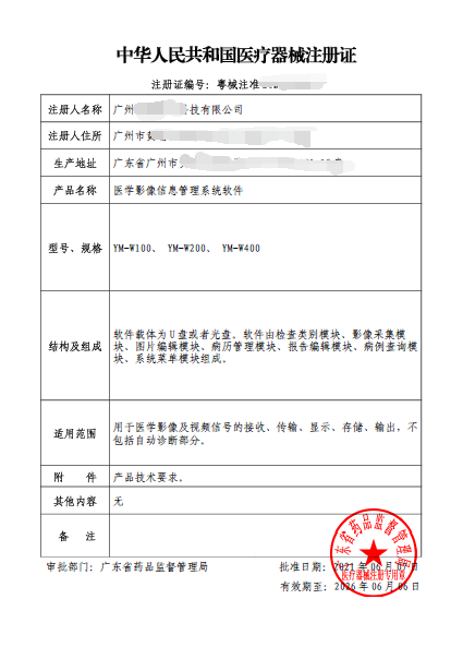 醫(yī)學(xué)影像信息管理系統(tǒng)軟件注冊(cè)證