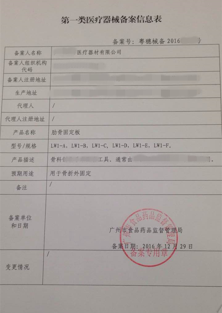 第一類醫(yī)療器械生產(chǎn)備案變更