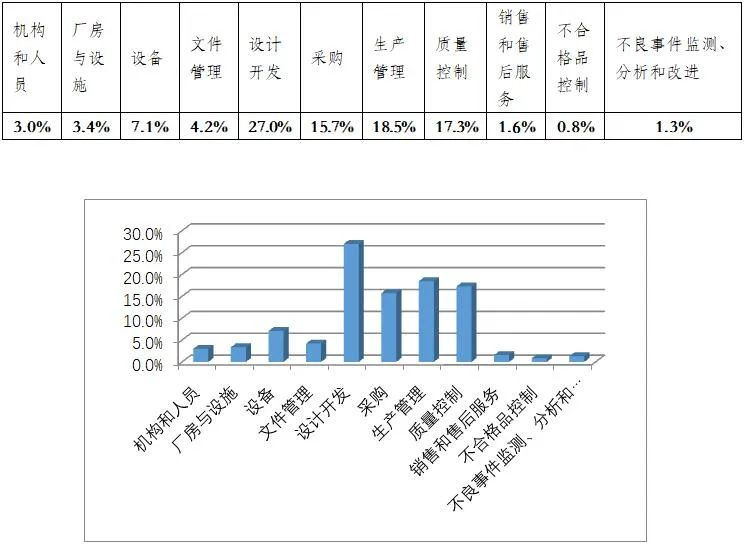 一、2022年度檢查概況 2022年度上海市器審中心依據(jù)《醫(yī)療器械生產(chǎn)質(zhì)量管理規(guī)范》(以下簡稱規(guī)范)對有源類醫(yī)療器械生產(chǎn)企業(yè)(設備類,不含獨立軟件產(chǎn)品)開展了現(xiàn)場體系核查,涉及核查產(chǎn)品為185個。 從不符合項在《規(guī)范》中各章節(jié)的分布情況來看,規(guī)范的11個章節(jié)均有涉及。從各章節(jié)不符合項總數(shù)占比來看,占據(jù)前四位的分別為設計開發(fā)(27%)、生產(chǎn)管理(18.5%)、質(zhì)量管理(17.3%)和采購(15.7%)。不符合項分布情況詳見圖一。 圖一 不符合項分布情況 三、現(xiàn)場核查常見問題 從2022年度有源醫(yī)療器械的現(xiàn)場核查發(fā)現(xiàn)的不符合項中出現(xiàn)問題最多的4個規(guī)范章節(jié)進行梳理: 現(xiàn)場檢查發(fā)現(xiàn)設計過程控制存在不足,主要體現(xiàn)在以下幾方面: (1)注冊人委托生產(chǎn)企業(yè)進行生產(chǎn)時,委托協(xié)議中雙方對研發(fā)的職責不明確,注冊人和受托生產(chǎn)企業(yè)對設計文件的轉(zhuǎn)移不充分。 (2)設計開發(fā)研發(fā)過程和輸出資料缺失。如現(xiàn)場未查見主控板的元器件、BOM清單、技術(shù)圖紙、主板電路原理圖、軟件源代碼等技術(shù)研發(fā)資料,或與實際生產(chǎn)樣機、產(chǎn)品說明書存在不一致。 (3)設計驗證不充分。如缺少對產(chǎn)品主要性能參數(shù)或與外部配合使用器械的驗證及相關(guān)記錄,產(chǎn)品部分功能未在技術(shù)要求中提及,未完成相關(guān)驗證。 (4)設計變更未進行及時的識別、評審、驗證和確認。 (5)產(chǎn)品風險分析及控制措施評價不充分,如產(chǎn)品開發(fā)新功能時未充分考慮臨床使用過程中的風險,未考慮產(chǎn)品故障情況下的非預期使用可能產(chǎn)生的風險。 現(xiàn)場檢查主要發(fā)現(xiàn)采購質(zhì)量協(xié)議中未明確采購要求、主要部件未能滿足采購追溯等問題,主要體現(xiàn)在以下幾方面: (1)采購質(zhì)量協(xié)議或采購合同中對主要采購部件的材質(zhì)、性能、技術(shù)參數(shù)、質(zhì)量標準等方面未做明確要求。 (2)原材料的進貨檢驗規(guī)范或驗證內(nèi)容浮于表面,僅對外觀、尺寸提出要求,未覆蓋關(guān)鍵性能參數(shù),與技術(shù)要求中整機性能參數(shù)有沖突。 (3)涉及軟件委外研發(fā)時,開發(fā)協(xié)議中未明確軟件需求、交付技術(shù)文件內(nèi)容、驗收標準、軟件更新及維護等內(nèi)容。 (4)關(guān)鍵部件未能追溯到供方的批號,對原材料批量問題無法開展分析和追溯。 現(xiàn)場檢查發(fā)現(xiàn)生產(chǎn)工藝不充分或關(guān)鍵控制點不明確、生產(chǎn)記錄不完整、主要零/部件無法追溯等問題,主要體現(xiàn)在以下幾方面: (1)部分企業(yè)存在生產(chǎn)過程簡單的問題,未對產(chǎn)品生產(chǎn)工序進行合理、有效分解細化,過度依賴部件模塊化。 (2)未對調(diào)試等關(guān)鍵工序制定詳細的作業(yè)指導書,存在依據(jù)經(jīng)驗進行生產(chǎn)的情況。 (3)生產(chǎn)過程未按照作業(yè)指導書中的要求執(zhí)行,生產(chǎn)記錄簡單,未記錄關(guān)鍵部件序列號或編號、軟件完整版本號,無法滿足可追溯的要求。 現(xiàn)場檢查發(fā)現(xiàn)檢驗規(guī)程不充分、檢驗記錄不完整、檢驗過程無法追溯等問題,主要體現(xiàn)在以下幾方面: (1)對檢驗規(guī)程未能覆蓋產(chǎn)品技術(shù)要求的檢驗項目,也未采取抽檢或過程控制等有效的質(zhì)量管控方式。 (2)檢驗方法與產(chǎn)品技術(shù)要求或國家標準有區(qū)別時,企業(yè)未對所采用的方法進行科學有效的確認,未能提供上述不同方法的等同性說明。 (3)檢驗記錄缺少原始數(shù)值記錄,檢驗結(jié)果無法重現(xiàn)或追溯。 (4)對于檢驗條件和設備要求較高,企業(yè)不具備檢驗能力的,也未委托具有資質(zhì)的機構(gòu)進行檢驗,以證明產(chǎn)品符合強制性標準和經(jīng)注冊的產(chǎn)品技術(shù)要求。 (5)產(chǎn)品分別存在使用模式和檢驗模式的情況下,未對檢驗用軟件進行充分確認。