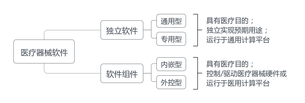 醫(yī)療器械軟件包括本身即為醫(yī)療器械的軟件或者醫(yī)療器械內(nèi)含的軟件,前者即醫(yī)療器械獨(dú)立軟件(簡稱獨(dú)立軟件),后者即醫(yī)療器械軟件組件(簡稱軟件組件)。 獨(dú)立軟件(SaMD)是指具有一個或多個醫(yī)療目的/用途,無需醫(yī)療器械硬件即可完成自身預(yù)期用途,運(yùn)行于通用計算平臺的軟件;軟件組件(SiMD)是指具有一個或多個醫(yī)療目的/用途,控制/驅(qū)動醫(yī)療器械硬件或運(yùn)行于醫(yī)用計算平臺的軟件。 獨(dú)立軟件作為醫(yī)療器械或醫(yī)療器械附件,通常單獨(dú)注冊,特殊情況可隨醫(yī)療器械進(jìn)行注冊,此時雖不控制/驅(qū)動醫(yī)療器械硬件但從產(chǎn)品角度運(yùn)行于醫(yī)用計算平臺,故視為軟件組件,如專用型獨(dú)立軟件可作為附件隨醫(yī)療器械進(jìn)行注冊。 軟件組件作為醫(yī)療器械或醫(yī)療器械部件、附件的組成部分,不宜單獨(dú)注冊,需隨醫(yī)療器械進(jìn)行整體注冊。